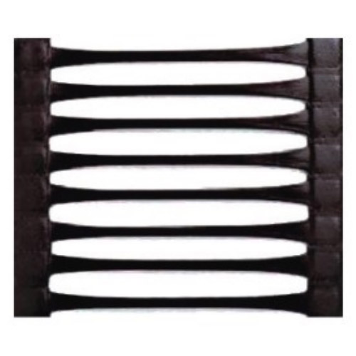 单向拉伸的土工格栅是由高分子聚合物经挤出压成薄板再冲规则孔网,然后纵向拉伸而成。这种过程中使高分子成定向线性状态 并形成分布均匀、节点强度高的长椭圆形网状整体性结构。此种结 构具有相当高的拉伸强度和拉伸模量,给土壤提供了理想的力的承 担和扩散的连锁系统。该产品拉伸强度大( >150Mpa),适应各 种土壤,是目前广为采用的加筋加固材料。